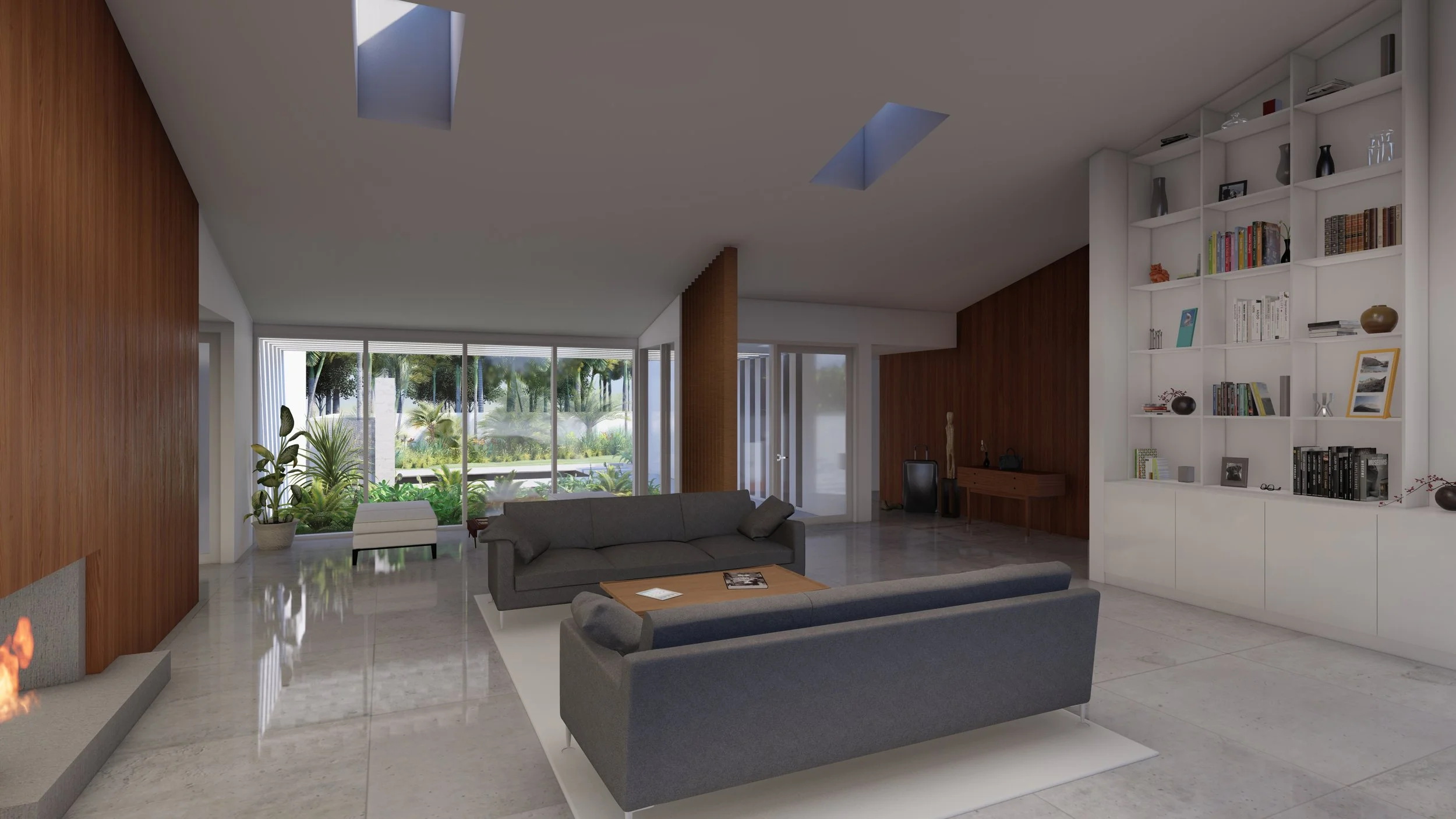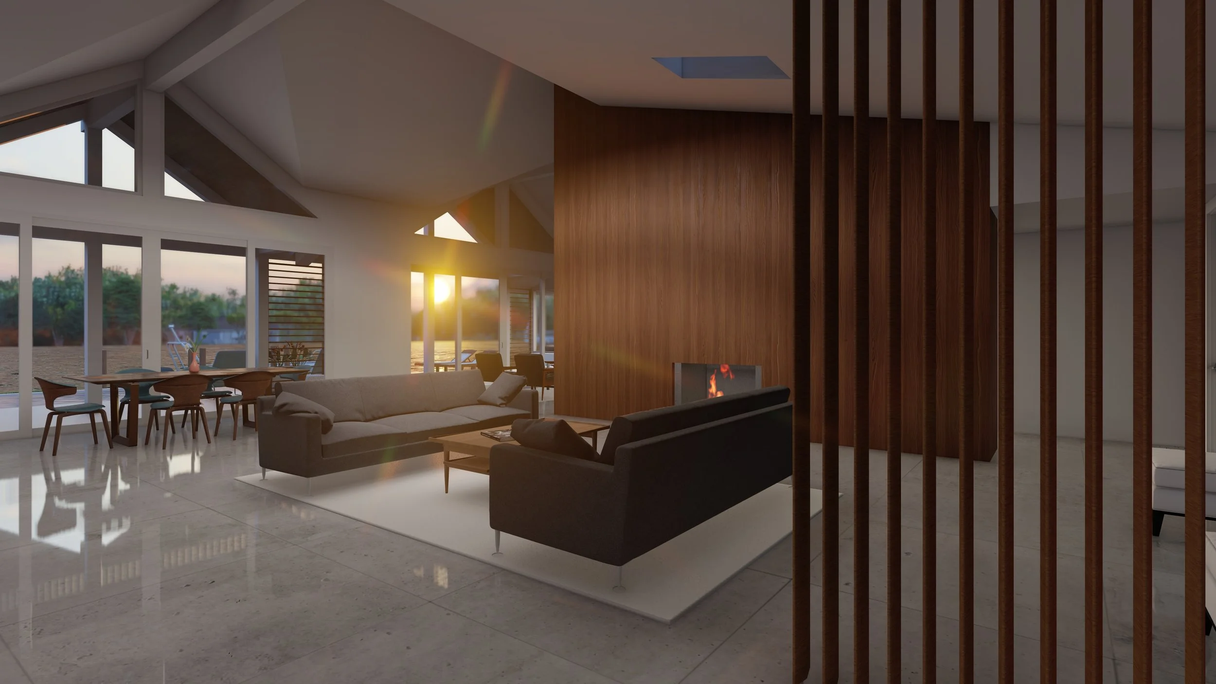 The Cedar Park addition and renovation is nestled along the protected shoreline of Coconut Bayou on Siesta Key. As the second renovation since 2007, the major challenge was integrating the original design with the previous renovation while adding a new dimension of space and functionality to the home. The new interior design in the northwest wing of the house mirrors the pitched garage form and creates a dynamic interplay between mass and void. The updated front entry features a courtyard and reflecting pool that leads out to a new waterfront terrace and larger swimming area. All interior spaces of the house have been reconfigured to accommodate the client’s needs while retaining the spirit of the original house.