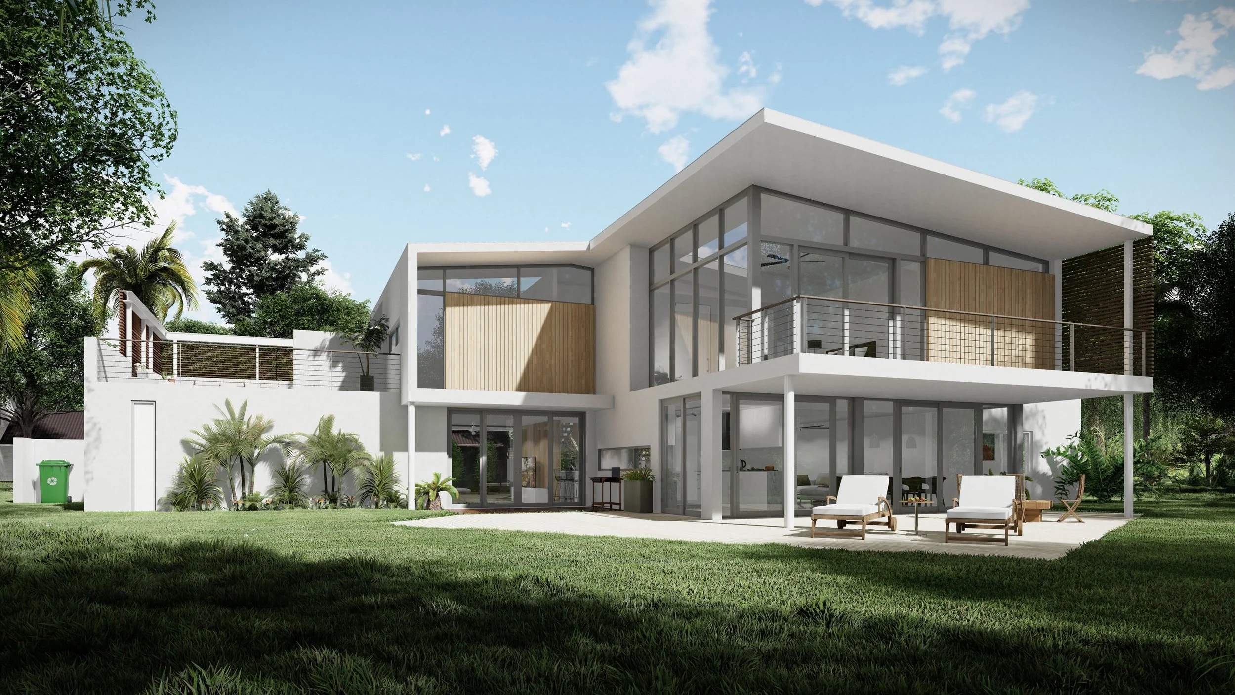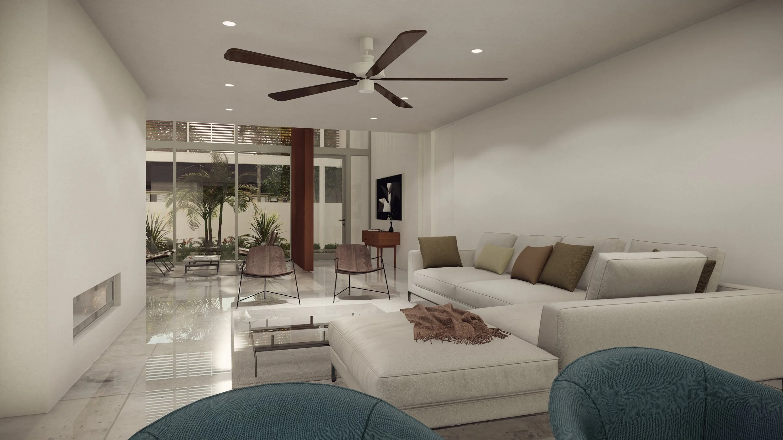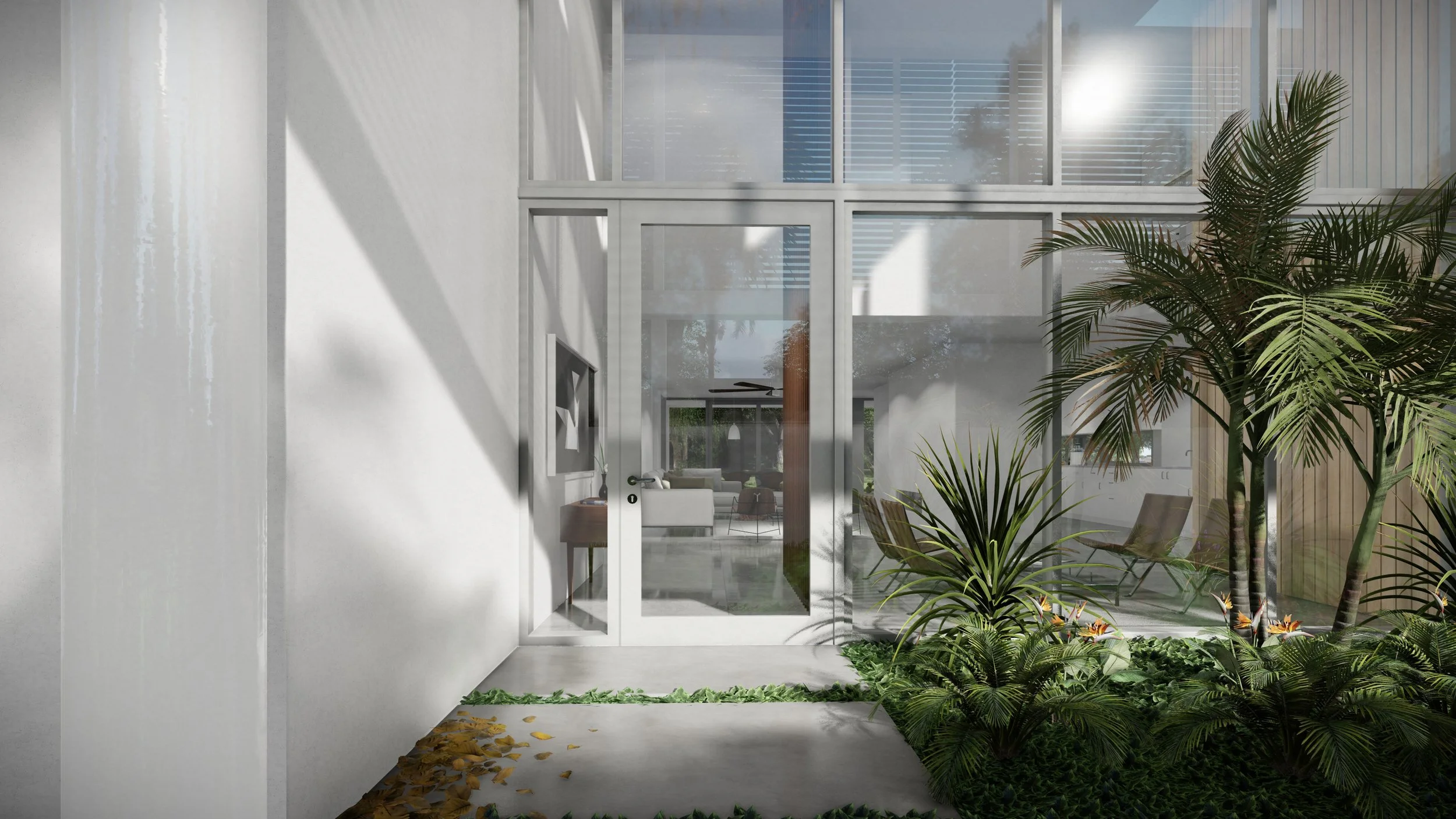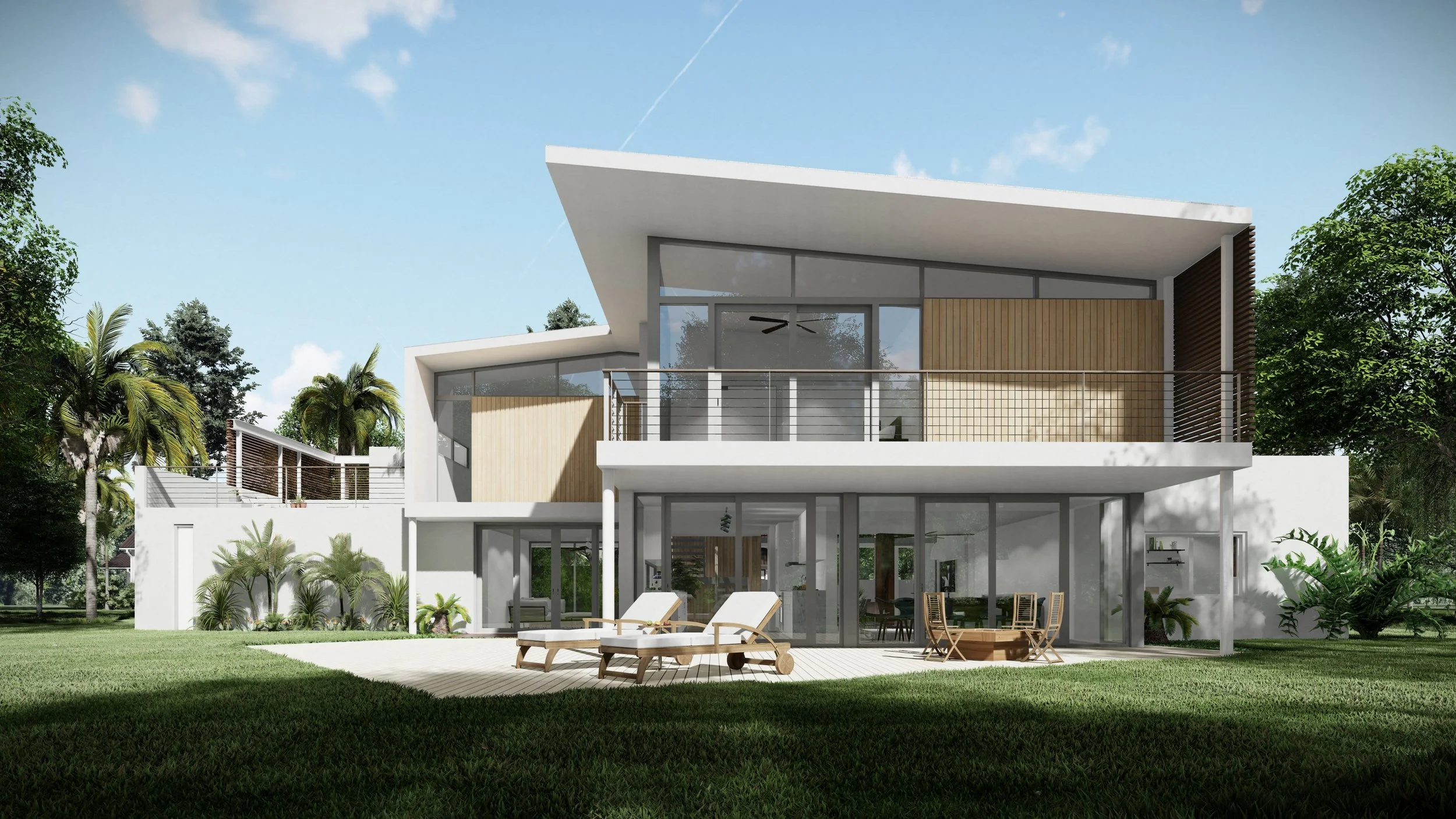 The concept for the renovation was to reinvent a home in the Indian Beach Neighborhood in Sarasota, Florida, by adding additional space and a design program that aptly responded to the regional qualities of the Gulf Coast. The primary conceit of the renovation was to create a new facade without compromising the exterior of the original 1960s structure. A wood-louvered screen wall was utilized to add a new dimension while providing privacy for the updated first-floor exterior terrace. The expanded entry is now a two-story space with an operable glass curtain wall of the same height.